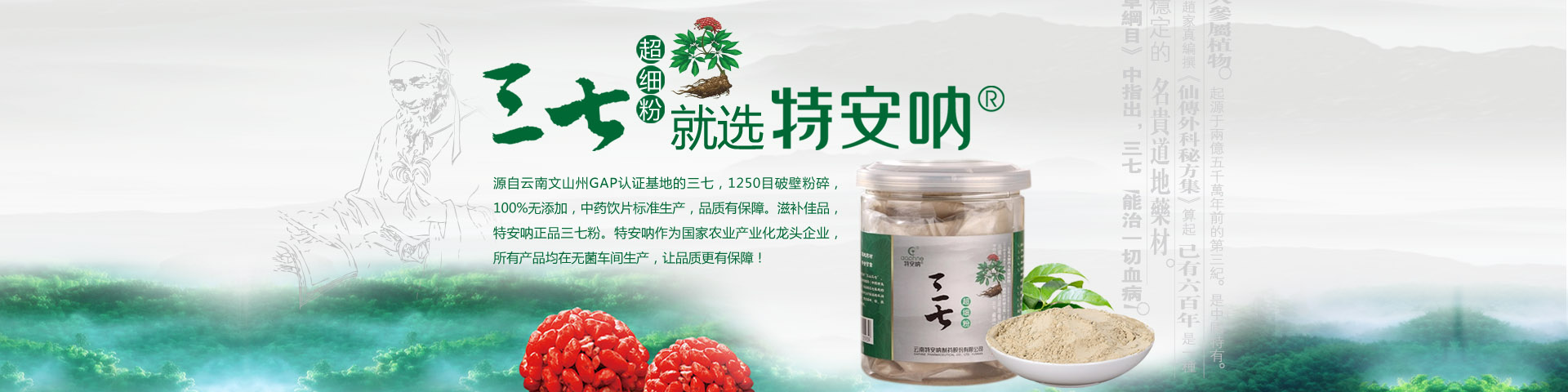 云南特安吶制藥股份有限公司(以下簡稱“公司”)成立于1994年5月。2015年7月,云南省康旅控股集團有限公司旗下的云南三七科技有限公司増資擴股,公司成為立足文山、專注三七開發(fā)的國有控股企業。公司成立以來,緊緊依托文山得天獨厚的三七資源優(yōu)勢,全力打造三七產業。經過近30年的發(fā)展,公司構建了以“產品研發(fā)基地、三七GAP種植基地、中藥材加工基地、產品生產基地、物流倉儲基地”和“三七國際交易...